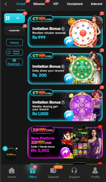 | Referral Bonus | Earn rewards by inviting friends to join and play on the platform. |